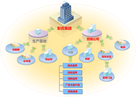 彭氏集团经过多年积累,形成以代理商为主体,大力发展商超、电商、连锁店、院校等营销渠道的格局,而相应的多通路的营销渠道,支撑了彭氏的快速发展。但传统的信息手段,难以支撑各细分通路的个性化需求,彭氏的对外“连接”治理就尤为迫切了。