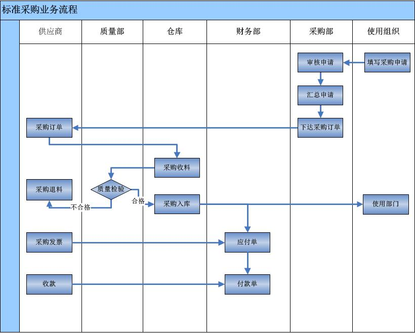 备注:业务蓝图设计中取消采购收料环节和质量检验环节,