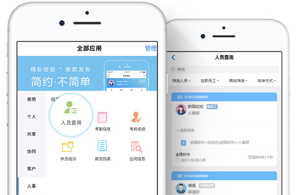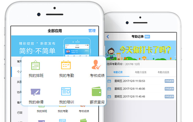 备全程OM工作平台的基础上,新增了人事、经理查询、考勤排班、